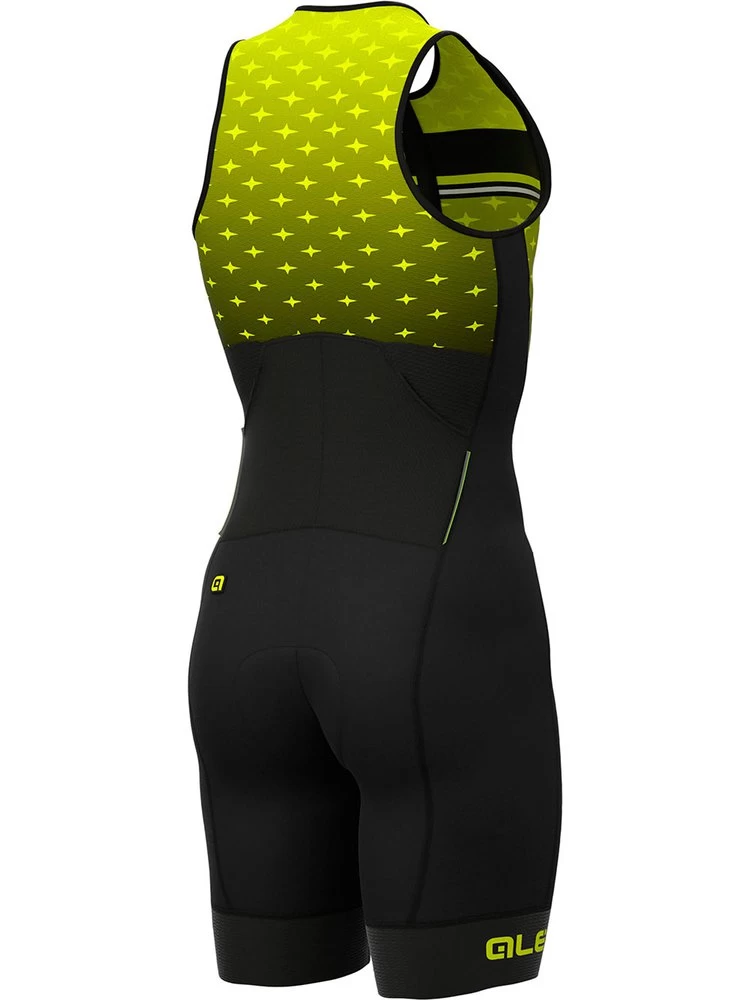 Produced with a water-repellent fabric that accelerates through the water, the Stars tri suit is anatomically cut with super lightweight fabrics that are primed