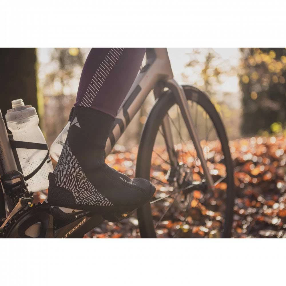 Our popular neoprene overshoes designed to beat wet weather the altura windproof thermostretch unisex cycling overshoes are designed for when the weather is doing its best to stop you from getting out on the bike. with its 2.5mm neoprene these overshoes provide a great warmth to weight ratio and excellent durability too, thanks to the reinforced sole. The strategically placed reflective print will help you be seen in lower light conditions and a handy zip fastener makes it easy to get these fitted overshoes on and off.