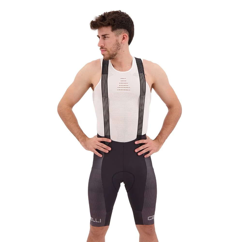 – Minimalist bib straps allow maximum airflow, while a reinforced yoke keeps the straps flat over the shoulders