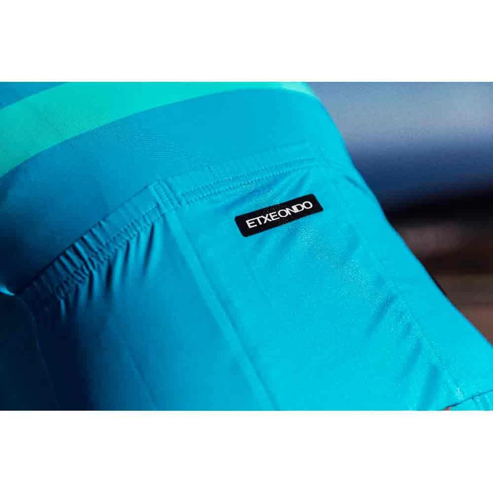 – Our designers prioritised speed. Front and rear panels of Endurance fabric cling to the rider, applying appropriate compression. Aerodynamic sleeves of ribbed Neoair cut wind resistance, helping you slice through the air. Etxeondos free cut technology avoids the need for seams or elastic grippers.