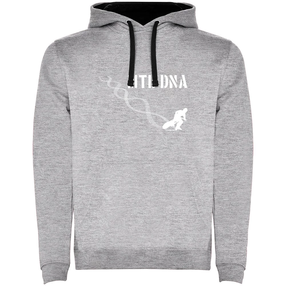 Two-colour hoodie with double fabric, contrasting adjustable drawcord.