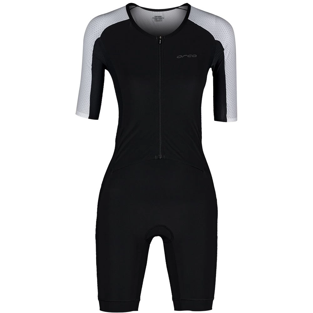 The Aero fabric in the shoulders, arms and back contributes to aerodynamic performance for cycling, as well as flexibility in the swimming segment.