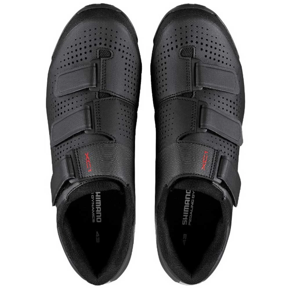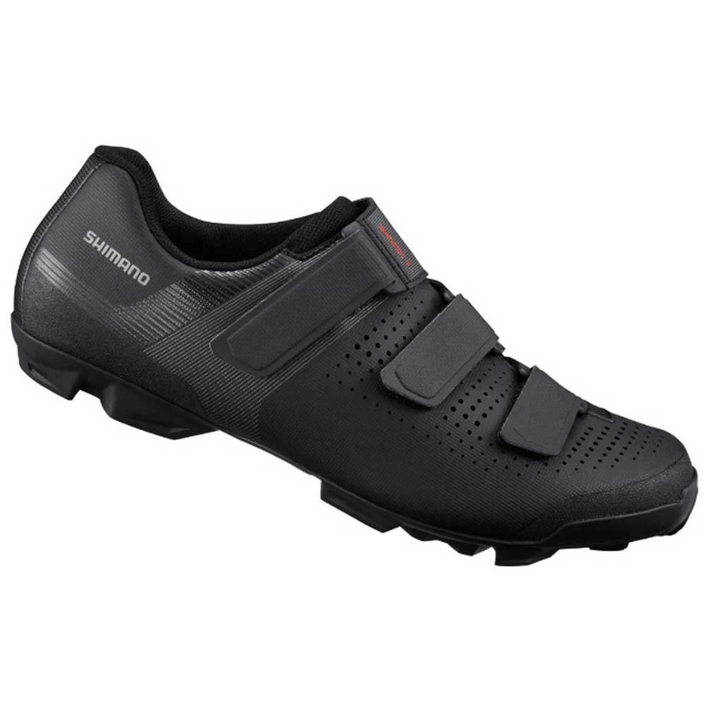 The Shimano XC100 MTB shoes offer features of more expensive shoes in a more economical variant. The three Velcro closures reduce pressure and tension over the foot, but provide enough support to transfer power to the pedals.