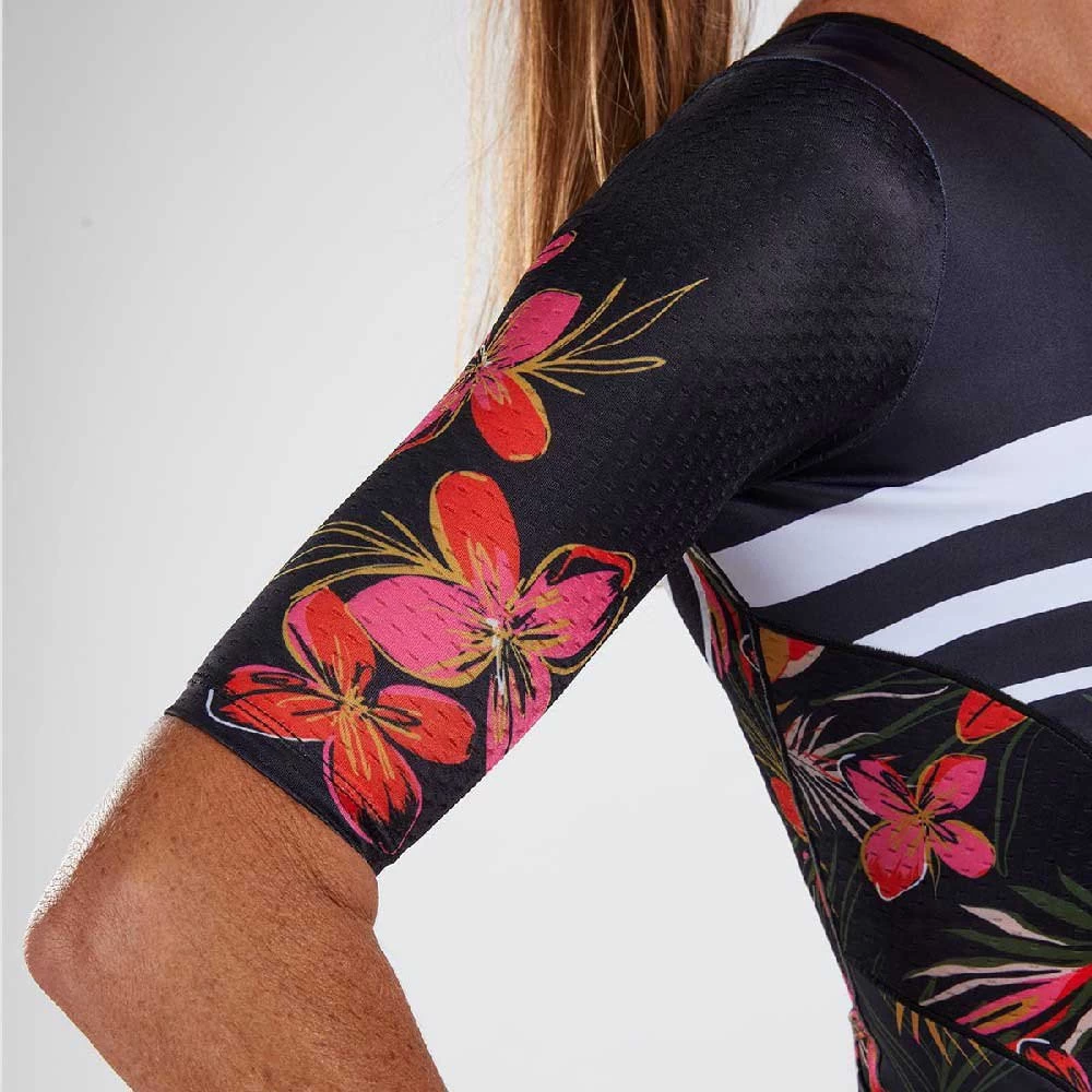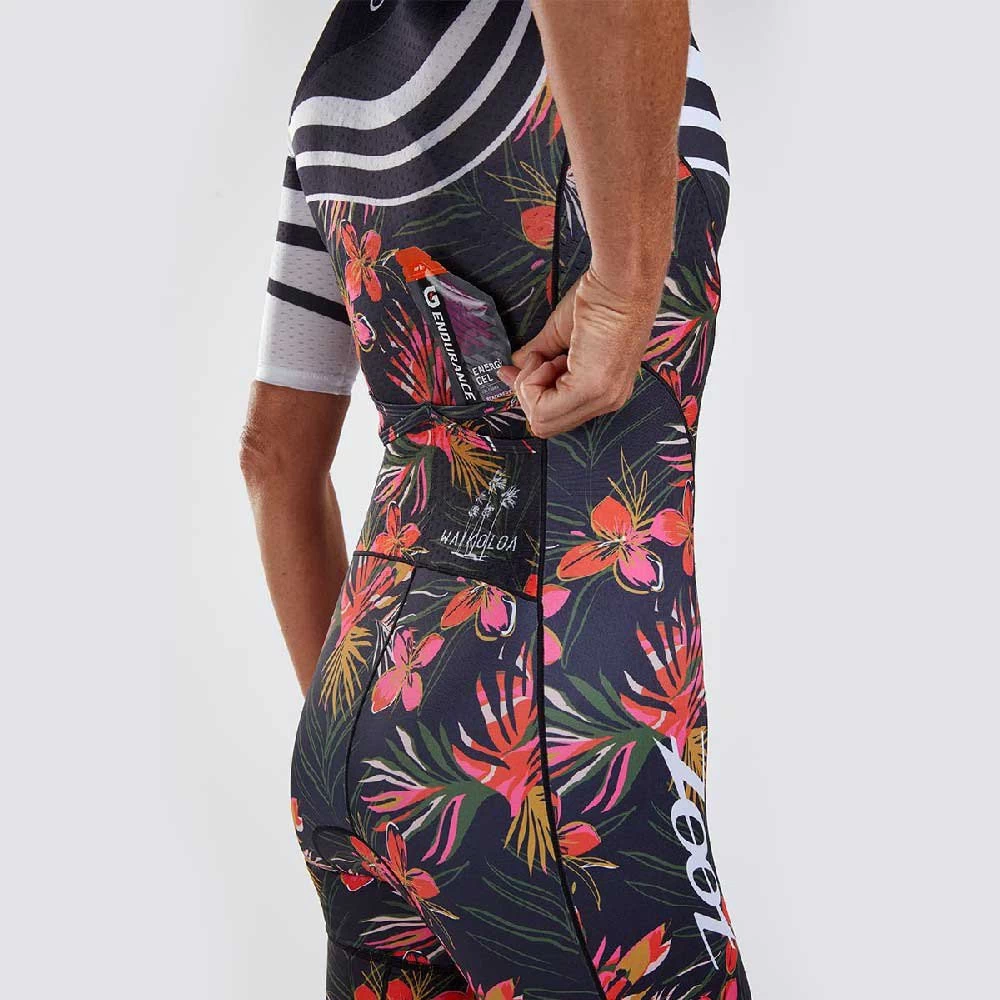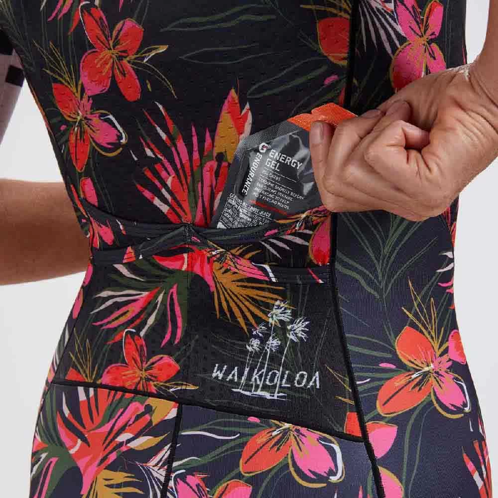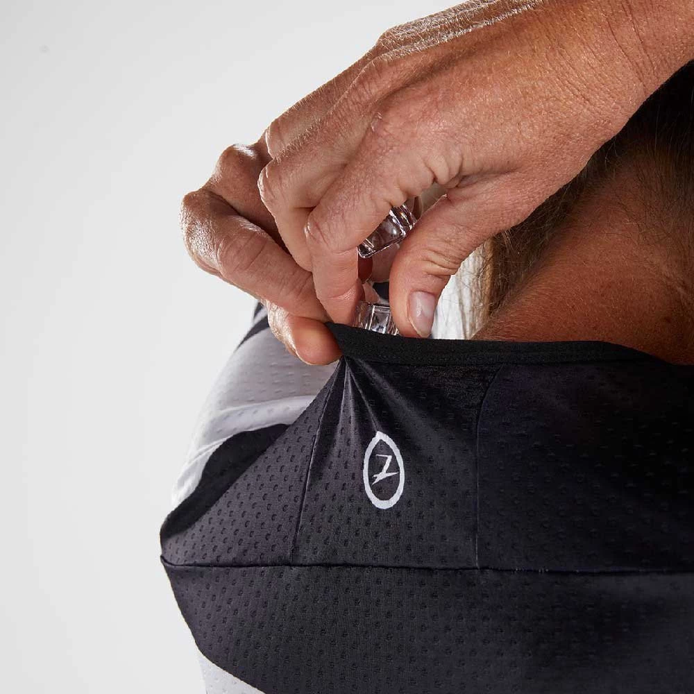 With NEW FEATURES for 2022 including internal ice and fuel pockets, the LTD Tri Aero Full Zip Racesuit promises to deliver on race day! Updated in 2022 with longer, more aerodynamic set in sleeves that reduce wrinkles to increase speed. The dimpled structure of Vento Aero fabric is placed in critical areas of the garment to reduce the vortex of air which is generated behind the athlete and, consequently, reduces drag and saves watts. The full zip design allows for quick and easy pit stops.