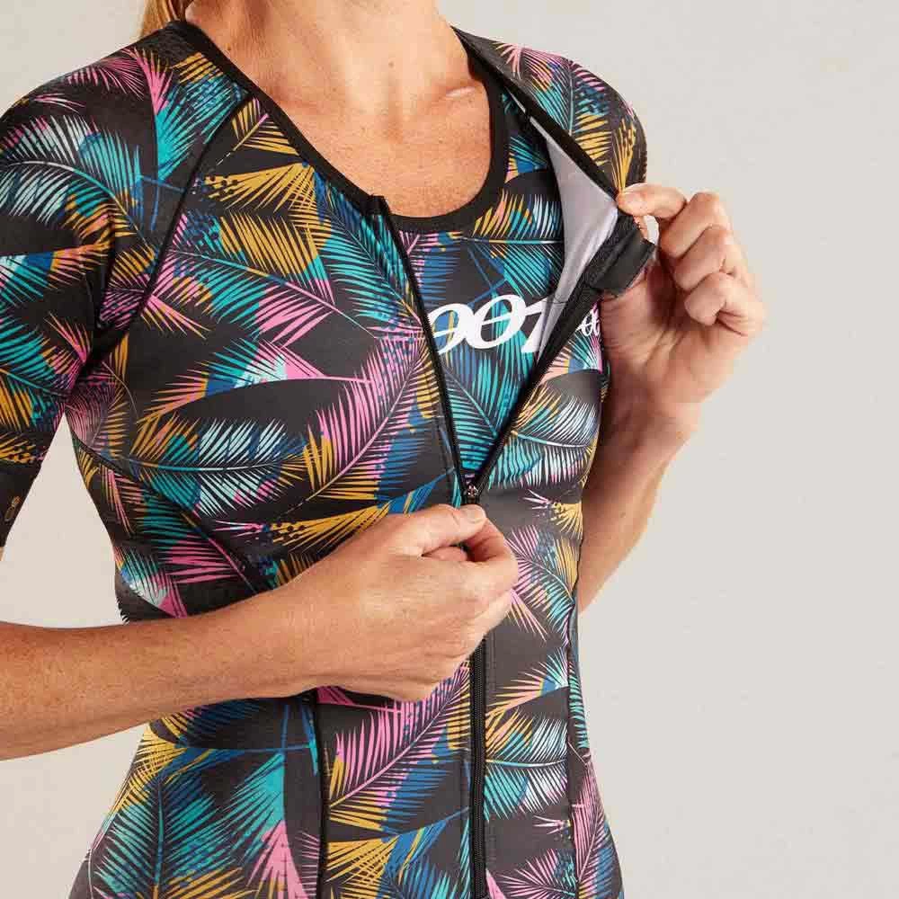 For maximum comfort on race day, the Tri LTD Racesuit delivers. Aero-cut with textured sleeves to reduce surface tension and increase speed on the bike. BYOB – bring your own bra for a custom fit. Sublimated Italian fabric helps you stay dry and comfortable while providing enhanced breathability. Integra SBR 2D pad construction provides support where you need it most. Race in style and comfort.